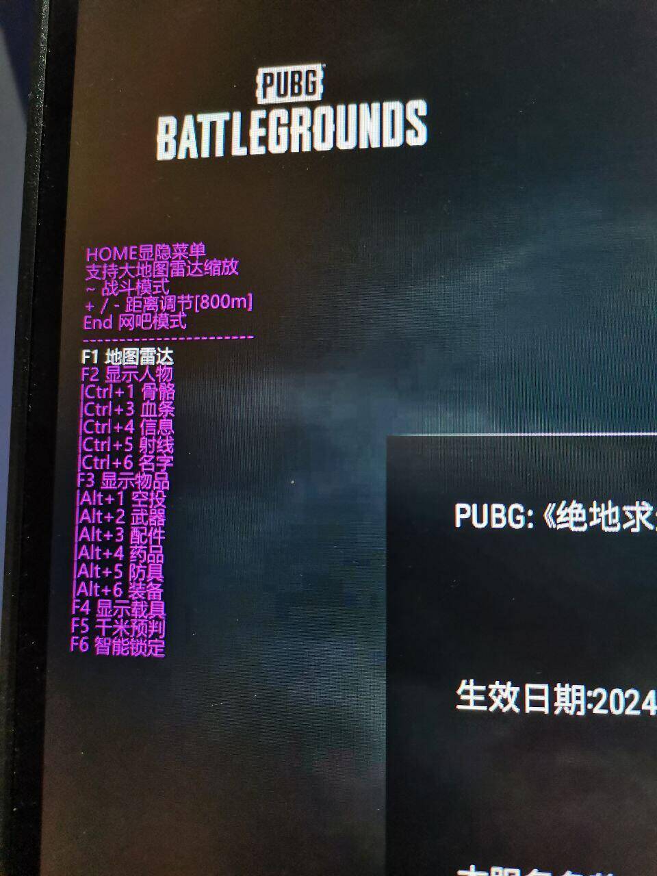 功能介绍:透视.自瞄.大小地图雷达.物质显示 支持系统:W10-W11 注意:每一局,出生地或落地必须按一次P键才有效果!不按没效果! 注:游戏必须无边框 注:无记忆功能,退游戏要重新开 辅助价格:8.8/8小时/18/天