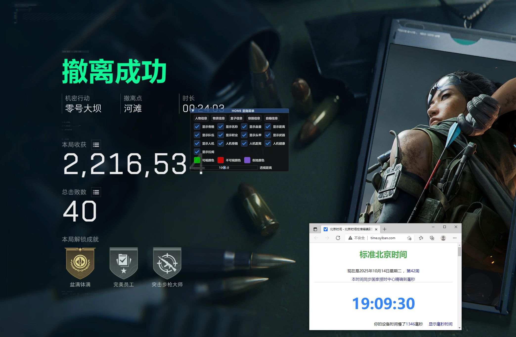 功能介绍:标签透视.自瞄.小地图雷达【没有物品显示】 支持系统:W10.W11 稳定指数:小号娱乐 注:游戏必须无边框使用 辅助价格:8.8/8小时/18天